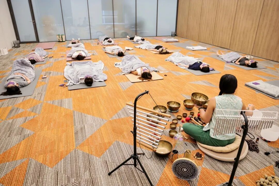 颂钵冥想工作坊为参与者带来沉浸式声音疗愈。在专业老师的引导下,大家闭目静坐,清澈深远的钵音缓缓流淌,帮助释放压力与焦虑。