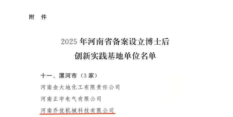 近日,河南省人力资源和社会保障厅正式下发《关于同意黄淮实验室等69个单位备案设立博士后创新实践基地的通知》(豫人社函〔2025〕262号),乔优公司成功通过备案评审获准设立河南省博士后创新实践基地。这一省级科研平台的获得,不仅是乔优公司在高层次人才平台建设方面取得的重大突破,更是企业科研创新实力获得认可的重要体现。