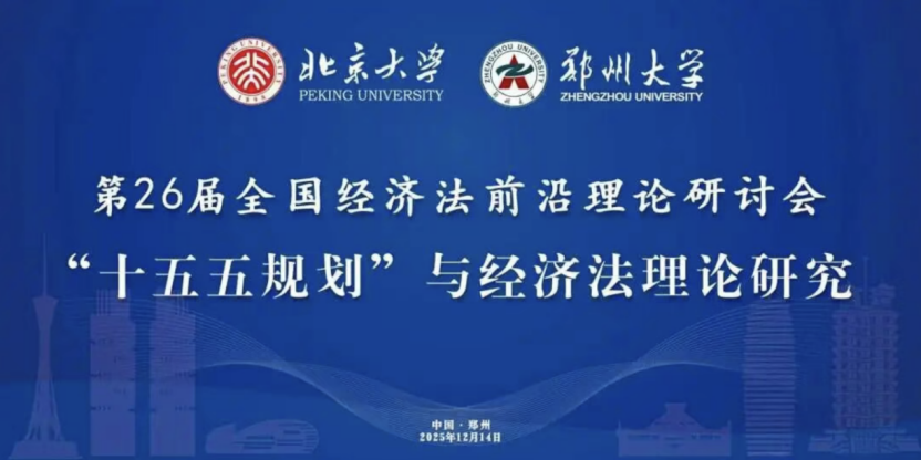 12月14日,由北京大学经济法研究所主办,郑州大学法学院、郑州大学经济法治研究中心承办,文丰协办的“第26届全国经济法前沿理论研讨会”在郑州召开。来自北京大学、中国人民大学、中国政法大学、西南政法大学、西北政法大学、中国社会科学院、武汉大学、南京大学、吉林大学、上海交通大学、复旦大学、中央财经大学、中南财经政法大学等十余所全国知名高校、科研院所的专家学者齐聚一堂,共同探讨“十五五”规划背景下经济法理论的新发展、新挑战。