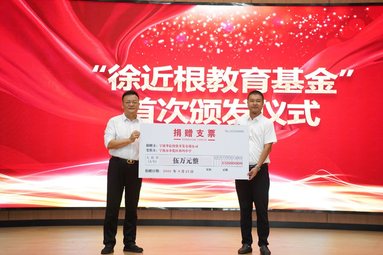 在随后举行的“徐近根教育基金”首次颁发仪式上,28名西坞中学“西中未来之星”获得表彰。“徐近根教育基金”是徐旭昶以父亲徐近根名字冠名的一项捐助家乡教育事业的基金,是徐旭昶父子由来已久的心愿。本月初,徐近根因病去世,生前他和长子徐旭昶多次提及捐助家乡教育事业,并经徐旭昶于去年底和今年6月在香港、奉化两地和区委统战部、区侨联领导详细商议了此事,决定捐助50万元成立“徐近根教育基金”,每年出5万元奖励西坞中学学业突出、综合素质过硬的优秀学子。