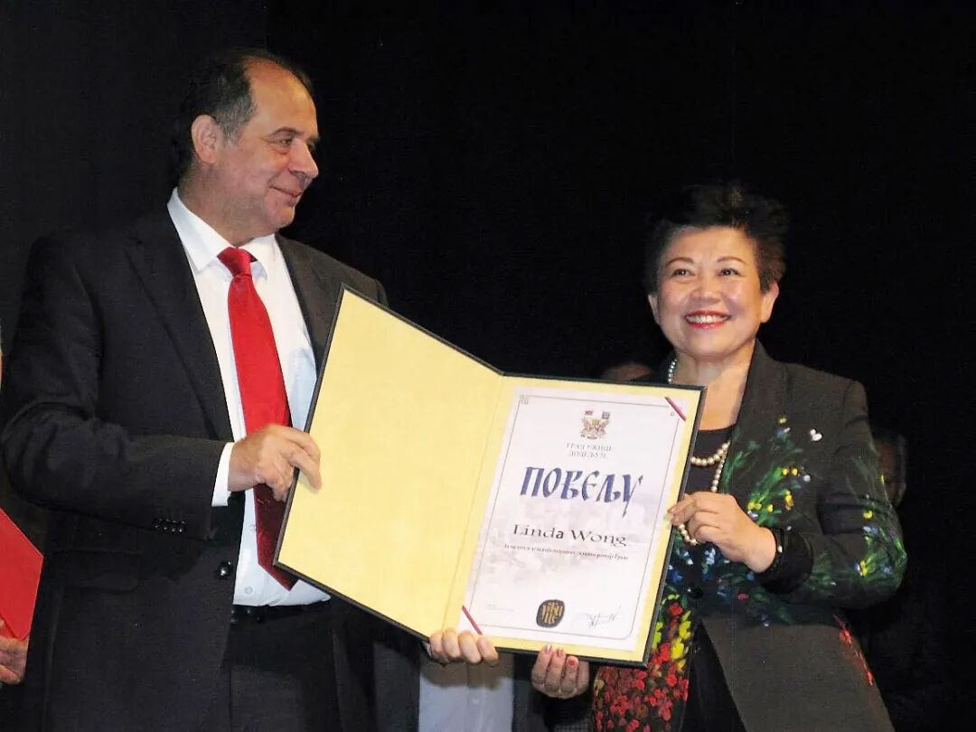 2016年 塞尔维亚乌日策市市长蒂霍米尔·佩特科维奇授予王琳达主席“城市终身贡献奖”