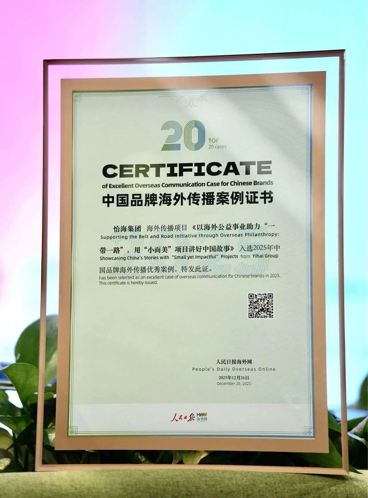 怡海集团的实践生动表明,“一带一路”倡议不仅是基础设施的“硬联通”、规则标准的“软联通”,更是共建国家人民的“心联通”。本次荣获2025年中国品牌海外传播优秀案例,是对怡海集团以“小而美”项目讲好中国故事的肯定。