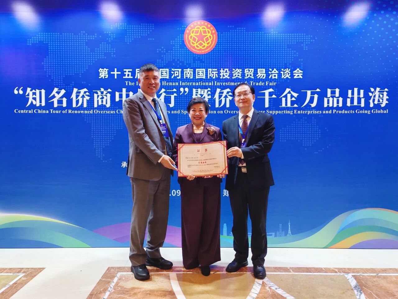 会后,河南省侨商联合会会长郑定辉代表商会邀请王琳达女士为商会名誉会长。