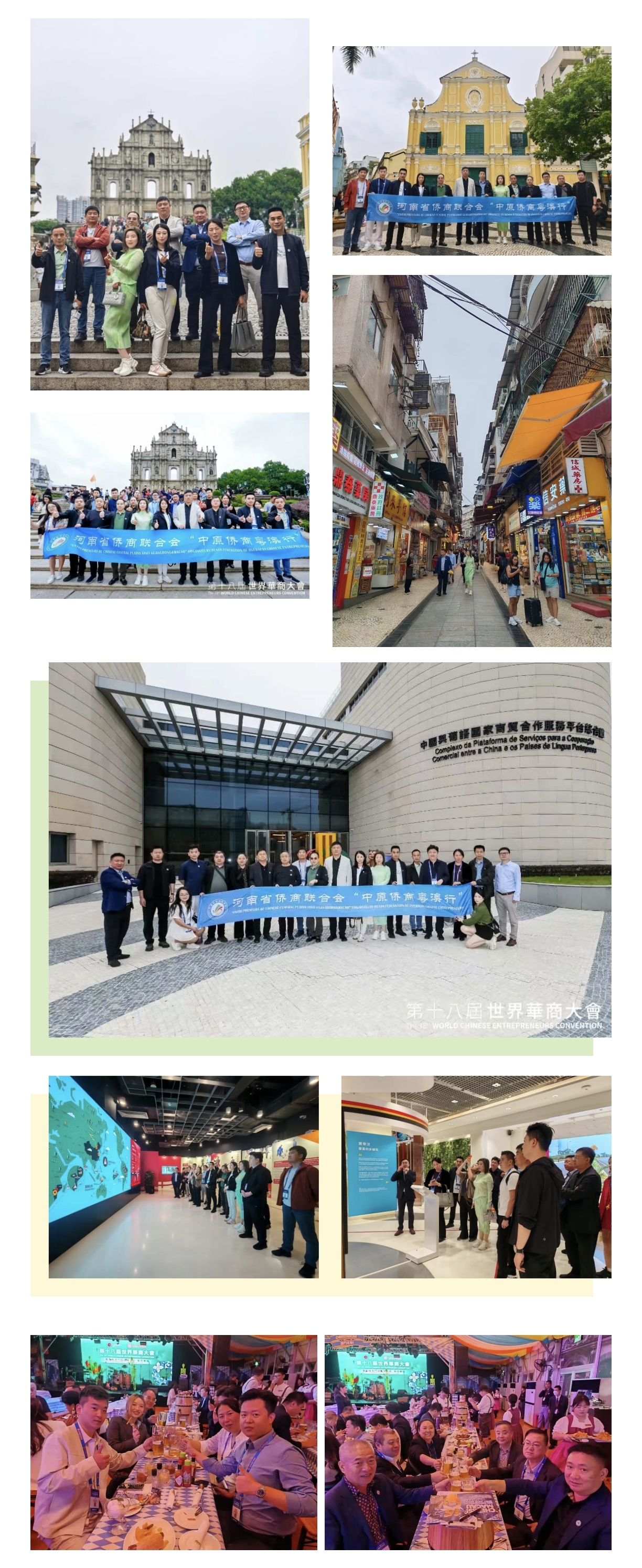 由澳门中华总商会举办的第十八届世界华商大会,于11月2日至4日在澳门隆重举行。本届大会以“共商共筑华商命运共同体”为主题,旨在促进全球华商间的交流与合作,共同探索发展新机遇。大会设开幕式、主题论坛、专题论坛、商业配对、商务考察、旅游观光、高尔夫球交流赛、闭幕式及会旗交接仪式等活动。受大会主办方邀请,河南省侨商联合会会长郑定辉,执行会长宋保山,常务副会长苗青、张士勇、翁旭生、胡淇皓,秘书长柴莉,副会长王继璋、陈雪平、王世印、梁斌,常务理事陈运强、王晓欣、孟阳、曹家恒、赵辉、郭卿、姚雨欣、黄宴斌,理事庄广海、连新全,会员部部长唐展溶,宣传部部长张利华参加此次盛会,与全球华商精英深入交流,共谋合作发展。