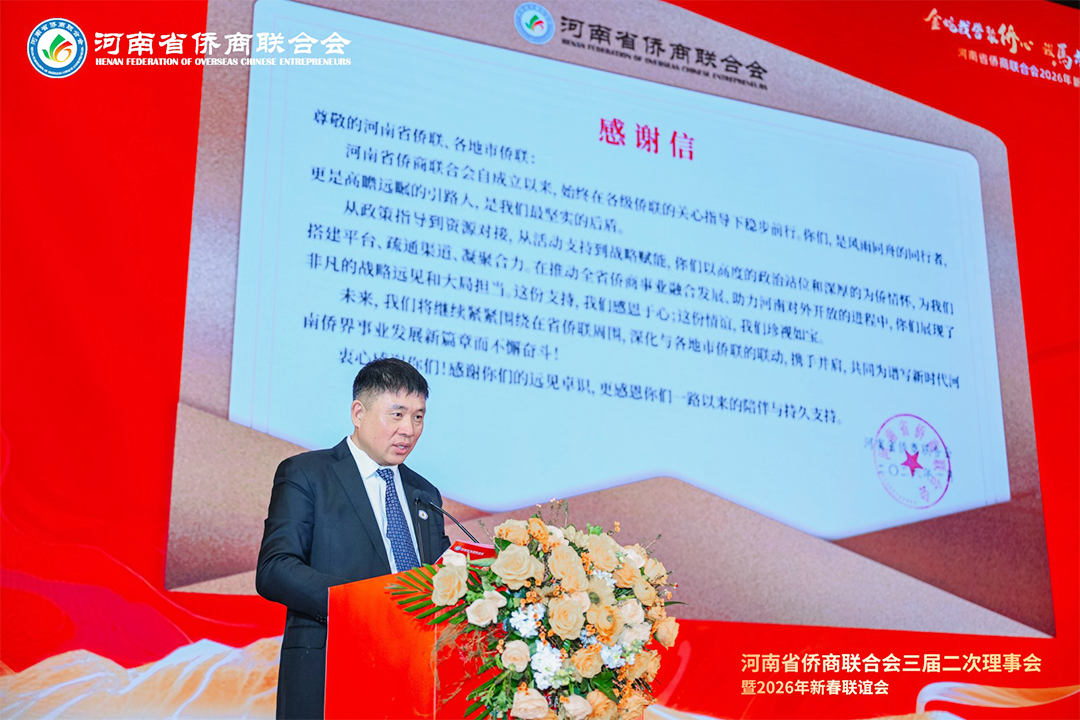 至此,河南省侨商联合会三届二次理事会暨2026年新春联谊会圆满落下帷幕。 这场盛会,既是对过去一年拼搏奋进的总结与褒奖,更是对新一年扬帆起航的动员与展望。站在新的起点,河南省侨商联合会将继续秉持初心,与全体会员一道,以龙马之精神,骋万里之征程,汇聚侨界磅礴力量,为助力河南经济社会高质量发展、谱写新时代中原更加出彩的绚丽篇章作出新的更大贡献!
