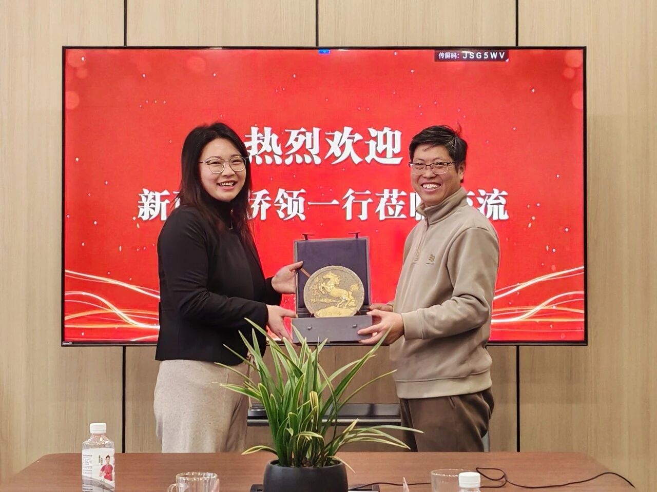 会后,河南省侨商联合会常务副会长王如民代表河南省侨商联合会为陈耐锶送上河南特色礼物,祝愿其新的一年马到成功。