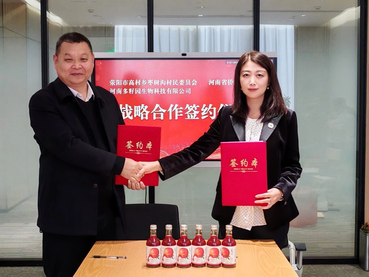 期间,荥阳市高村乡枣树沟村民委员会、河南多籽园生物科技有限公司与河南省侨商联合会现场签订战略合作协议,未来将共同推动助农产品——荥阳河阴石榴产业发展,为地方经济繁荣贡献侨界力量。