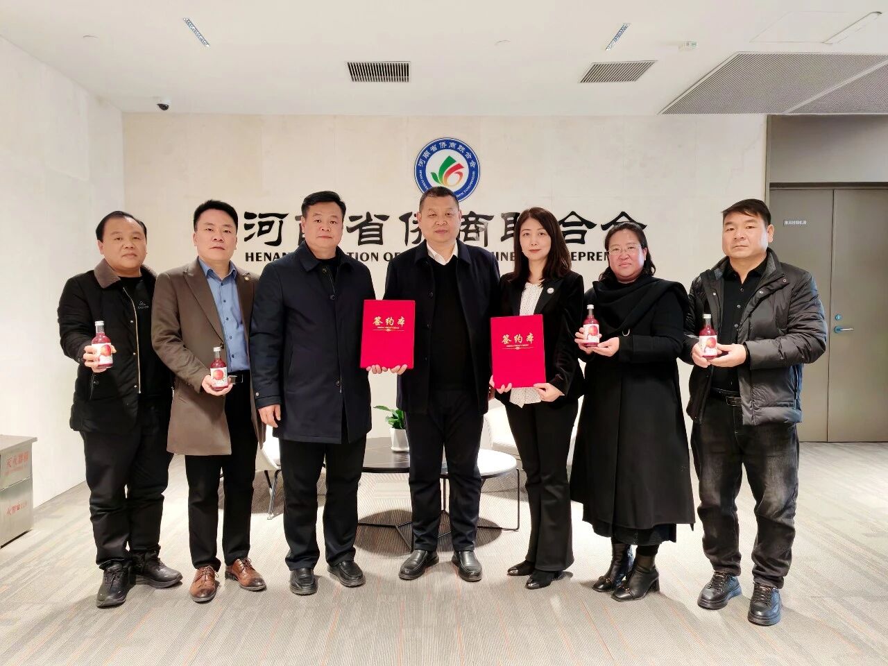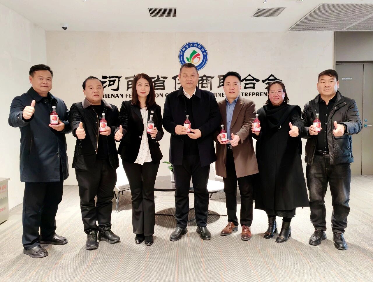为了以实际行动表达对此次战略合作及乡村振兴事业的支持,河南省侨商联合会积极动员会员企业认购,会长郑定辉,执行会长宋保山,常务副会长王如民、赵天星、张士勇、胡淇皓,常务理事黄宴斌等热情响应,率先垂范,完成了对“东方石榴红”河阴石榴汁的首批认购近200箱。这一实际行动不仅为合作开局注入了强劲动力,也彰显了侨商群体投身乡村振兴、助力地方特色产业发展的真挚情怀与强大凝聚力。