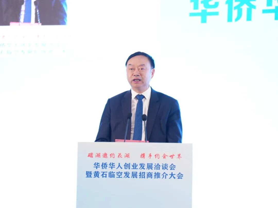 11月26日,第25届华创会暨黄石临空发展招商推介大会在黄石市举行。黄石市委书记郄英才出席并致辞。湖北省委统战部副部长苏德玛,湖北省侨联党组成员、副主席王慧萍出席并讲话。黄石市委副书记、市长吴之凌主持并颁发海外“双招双引”大使聘书。