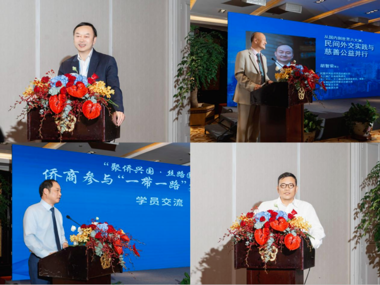 本次研修班规格高、内容新,聚焦全球新发展格局与“一带一路”建设新机遇、中外文明交流互鉴与“一带一路”民心相通等关键议题,为广大侨商参与共建“一带一路”提供信息、平台和渠道,吸引了来自美国、英国、意大利、日本等国家和地区的50余名侨商代表参加。武汉伟鹏控股集团创始人喻鹏、香港凯信荣集团董事局主席胡智荣、佳信海坛控股董事长林正佳、炎黄集团董事长邝远平、南非太阳神集团董事长周志伟、加拿大华商联合会主席林金龙、刚果中华总商会会长张琪、蒙古国中华总商会浙江商会会长金锦明等海外侨领代表,分别围绕共建“一带一路”、增进民间友好、侨团合作共赢等主题作交流发言,分享自己的心得体会与前瞻思考。