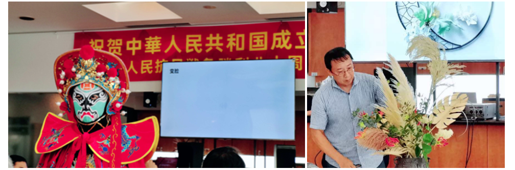 中场由在日华人著名“花道师范”胡兴智为大家现场演出并指导了花道艺术,为庆祝会平添异彩,也受到了大家的一致好评。其后,大会进入了出其不意的惊喜环节。策划人突发奇想请出大使馆总领事陈巍为大家演唱歌曲《爱拼才会赢》。这首诞生于台湾解严时期、表现闽商奋斗精神的歌曲后来被称为全球华人共同的励志符号,正符合在日华人们的奋斗心路。陈巍总领事虽现场被突然点名,但仍用热情的话语和歌声回应了现场听众,令大家倍感亲切。其后,使馆的赵明参赞也应邀为大家带来了一曲李清照原词的《一剪梅·红藕香残玉簟秋》,使馆人员的这种亲切互动把庆祝会推上了一个小小高潮。