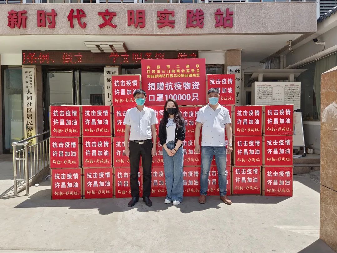 疫情面前显担当,爱心捐赠践初心。5月5日,由许昌市工商联对接,许昌市三门峡商会筹备组、省侨商会预备副会长企业仰韶彩陶坊酒许昌总经销商河南韶朗商贸有限公司出资向许昌市魏都区抗疫一线人员无偿捐赠100000只防疫口罩,以实际行动支援地方疫情防控工作。许昌市魏都区区委常委、统战部长楚知真,许昌市魏都区区委统战部副部长、工商联党组书记郑晓伟,许昌市魏都区南关街道党工委副书记魏蔚,河南韶朗商贸有限公司总经理刘军伟,许昌公司经理杨冬旭等人参与捐赠活动。