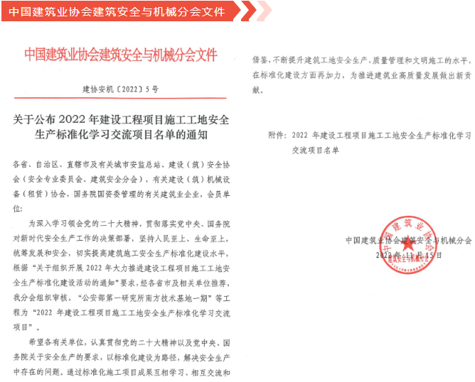 近日,从中国建筑业协会建筑安全与机械分会处传来喜讯,由我会副会长单位新蒲建设集团承建的省直青年人才公寓永盛苑项目被列为“2022年建设工程项目施工工地安全生产标准化学习交流项目”。