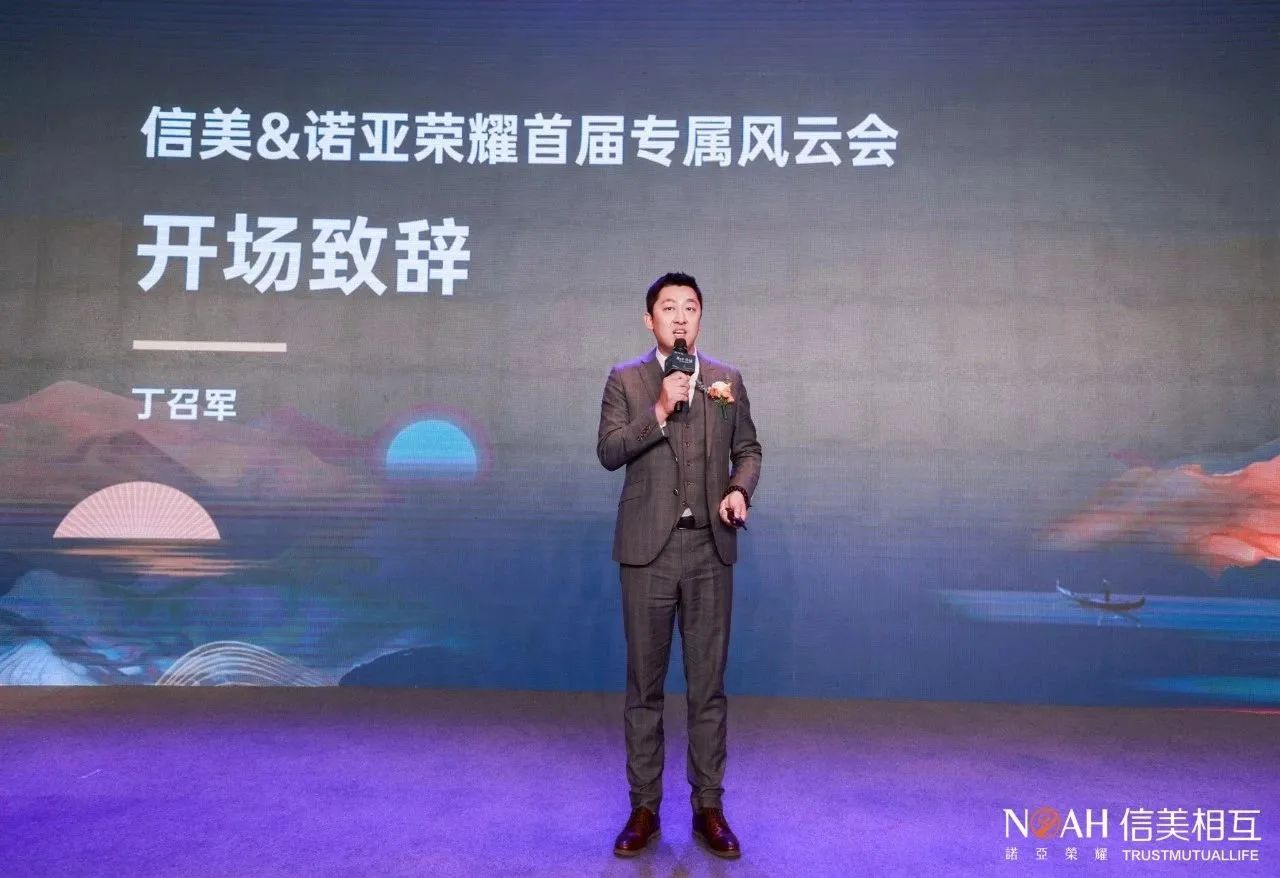 27日,信美相互人寿风云会在诺亚国内荣耀保险BU副CEO丁召军先生的致辞下拉开帷幕,他表达了对现场嘉宾和客户的欢迎。