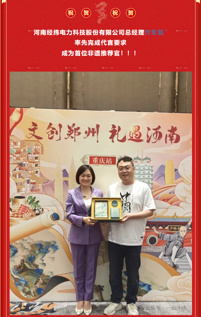 非遗汴绣礼盒一经亮相,郑州市优秀企业家们便给予了高度评价,纷纷表示要参加此次代言活动。最终,河南经纬电力科技股份有限公司总经理付军凯先生率先完成代言要求,成为首位非遗推荐官!
