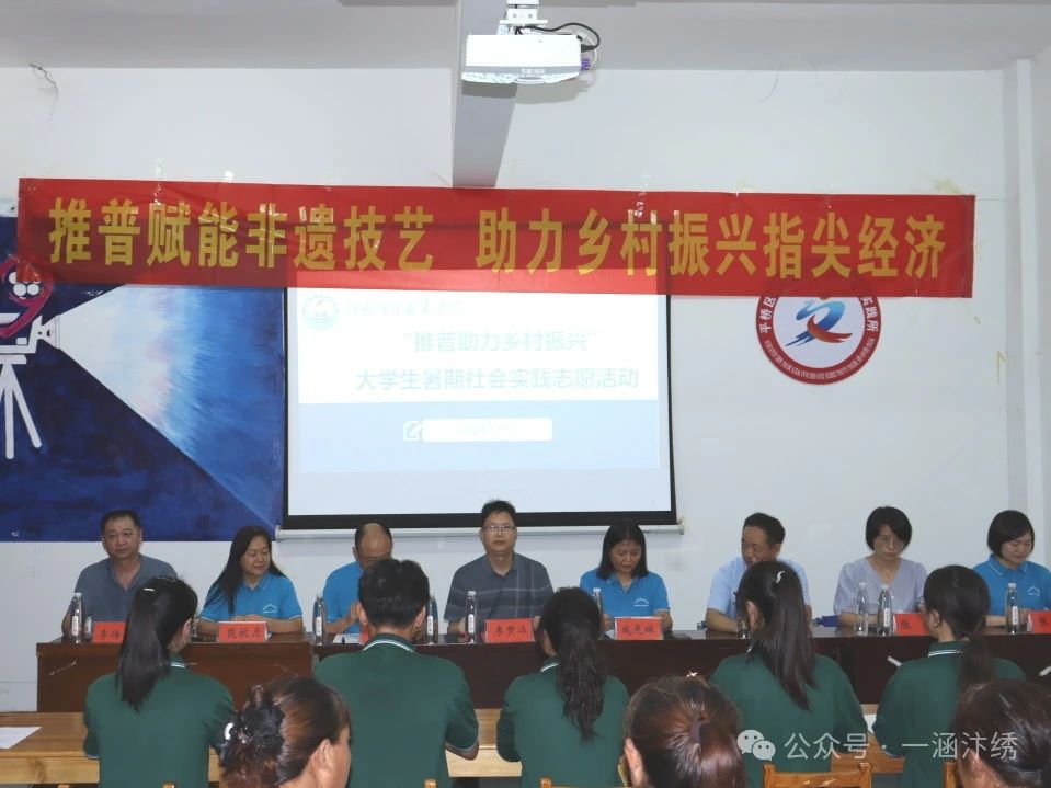 为推广普及国家通用语言文字,服务铸牢中华民族共同体意识,推进乡村振兴事业发展。8月26日,省侨商会理事单位一涵汴绣携手河南经贸职业学院在信阳市明港镇清淮村开展“推普赋能非遗技艺 助力乡村指尖经济”为主题的社会实践活动。