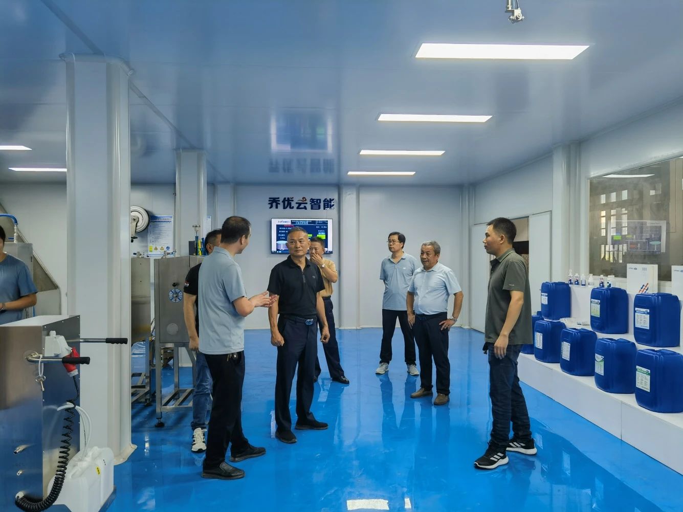 王安建主任在听取万军超总经理对乔优公司的介绍后,对乔优公司当前取得的成绩表示了赞许,并提出让乔优公司进行升级和创新,结合农副产品加工行业做研究,把农副产品保鲜和消毒作为一个方向。万军超总经理对此建议十分赞同,当即表示公司将依托Haber-Ammo Technology Ltd.(哈伯合成技術有限公司)技术平台,开展课题研究,将国际先进的清洗消毒技术与国内农业现代化的需求进行匹配,为食品安全的持续升级做出应有贡献。