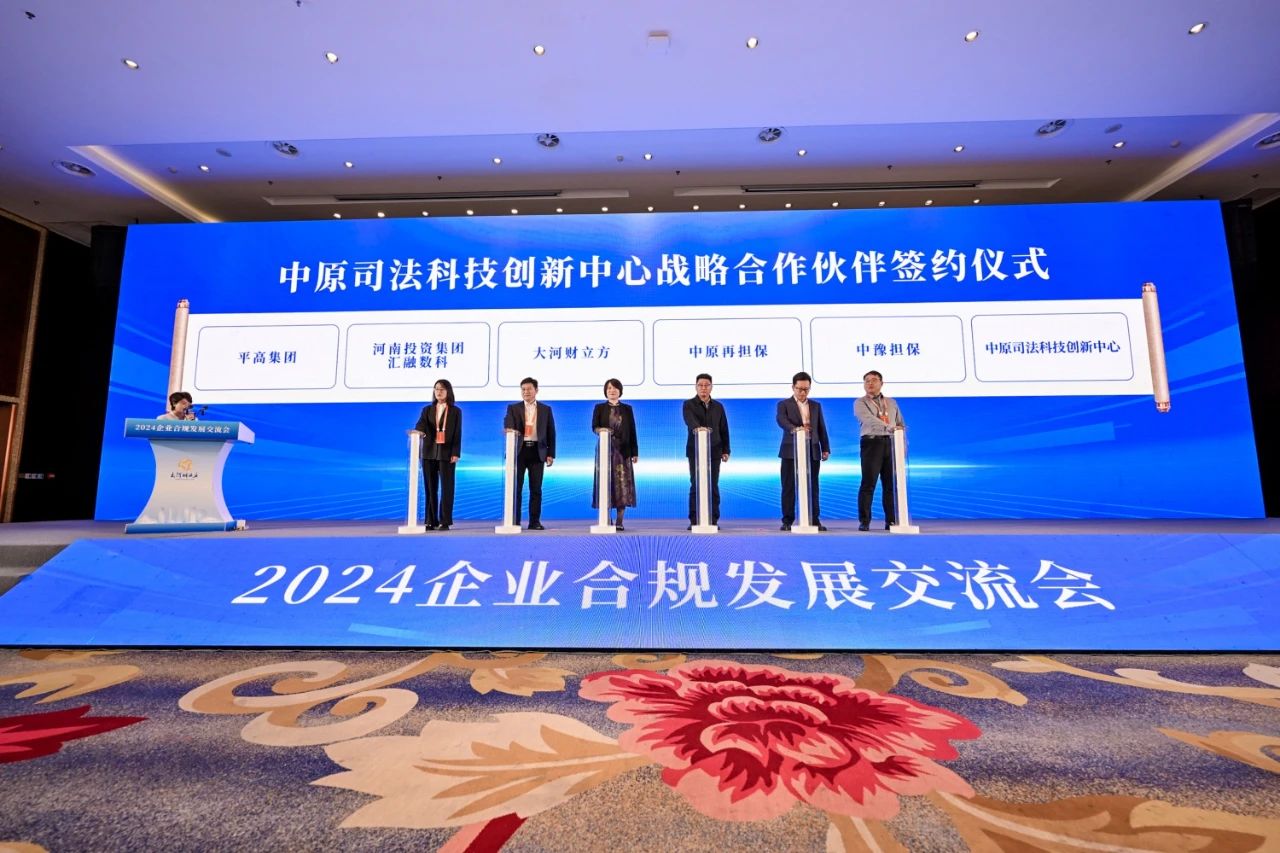 会议现场,中原司法科技创新中心战略合作伙伴举行签约。大河财立方、中原司法科技创新中心、中原再担保、河南投资集团汇融数科、中豫担保、平高集团登台签约。