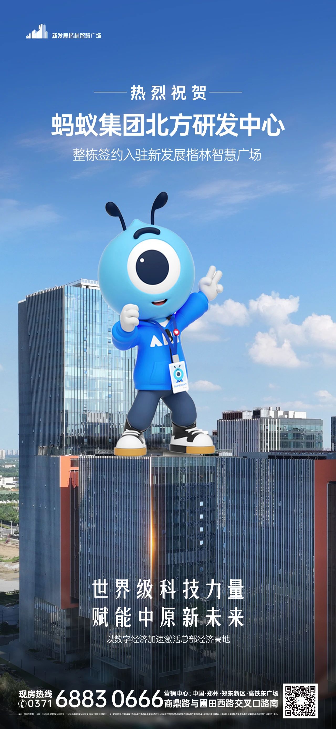 近期,蚂蚁集团在郑东新区再次升级重要战略布局,蚂蚁集团北方研发中心整栋签约入驻高铁站东广场河南省侨商联合会常务副会长单位楷林控股项目——新发展楷林智慧广场,预计2025年下半年正式启用,约容纳员工5000人。