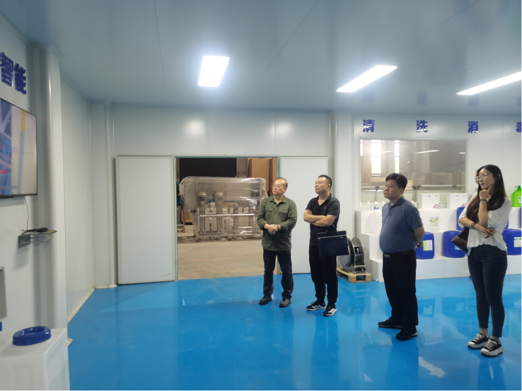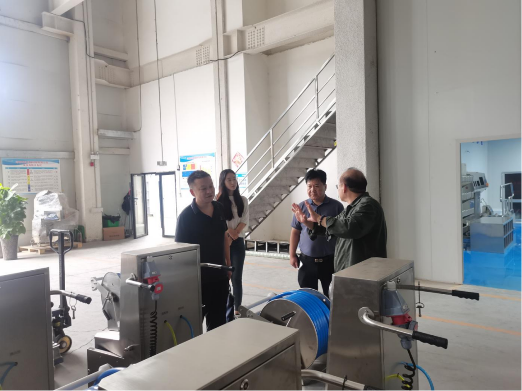 参观过程中,刘鹏总经理介绍了公司自主研发的多款洗消产品,邀请白秘书长等人现场体验泡沫洗消设备的便捷性与高效率,同时重点演示了“乔优云智能”物联网系统。该系统可远程实时监测用户洗消设备的运行状态,实现能耗数字化管理与远程协助,显著提升了食品行业卫生清洁的自动化和智能化水平。