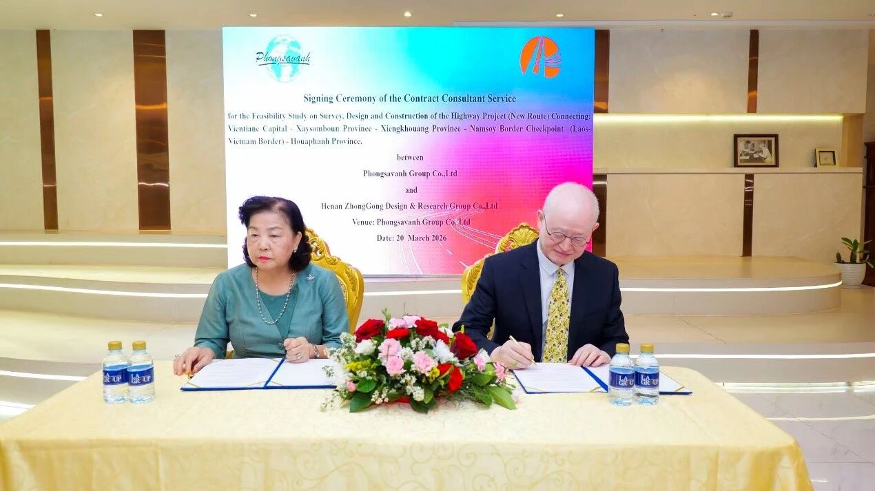 2026年3月20日,河南省中工设计研究院集团股份有限公司(HNDI)与老挝丰沙湾集团在老挝万象举行签约仪式,正式签署万象至华潘高速公路项目可行性研究咨询合同,标志着这条连接老挝首都与东北部边境的重要高速前期工作全面启动。