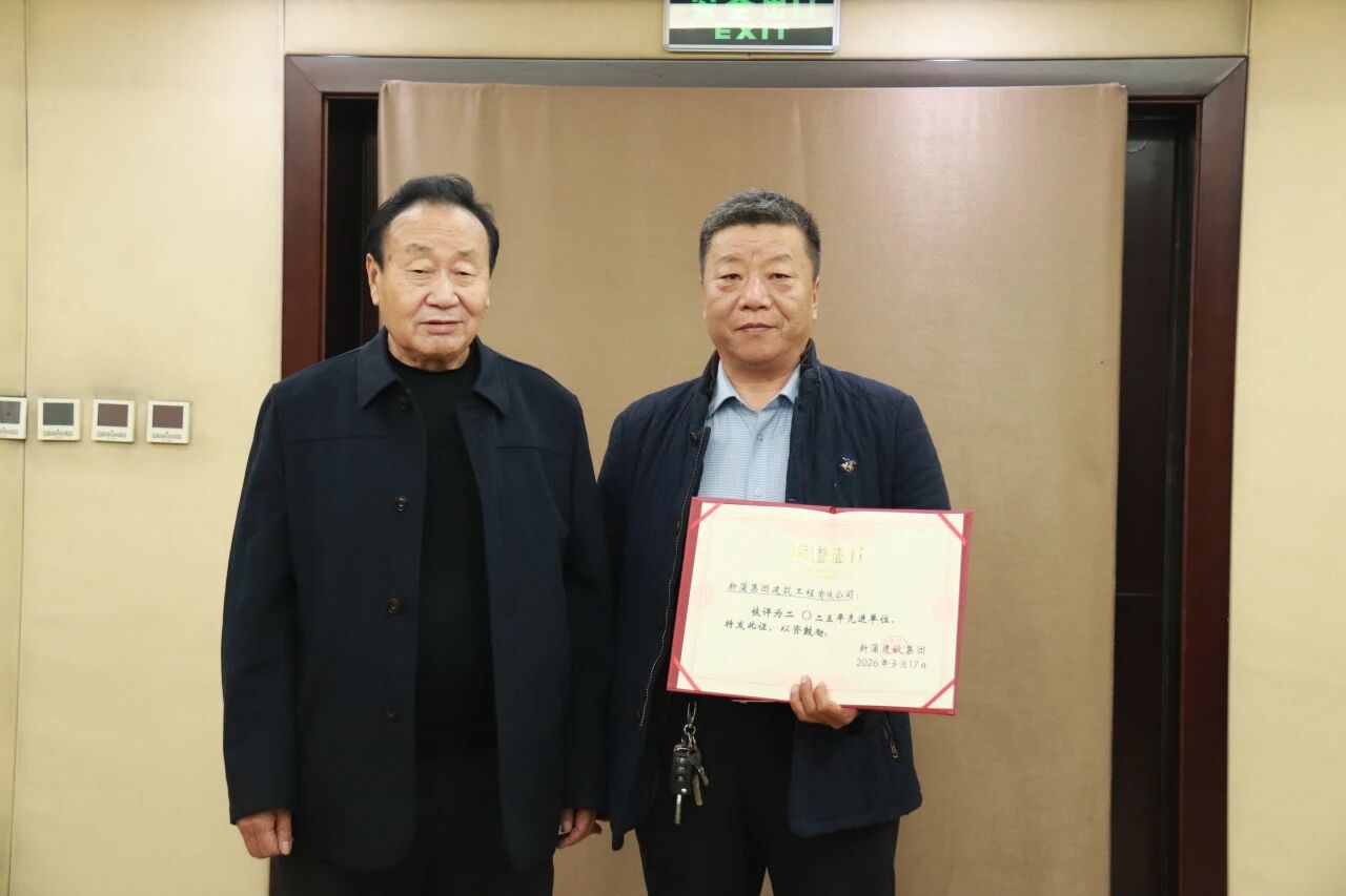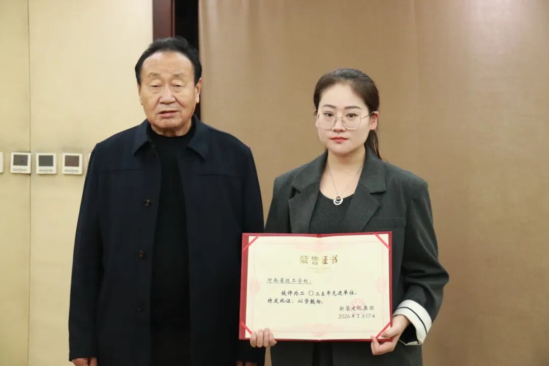 随后,会议宣读了董事局任命文件及2025年度先进单位表彰决定,河南省新蒲置业有限公司、新蒲集团建筑工程有限公司、河南省技工学校荣获先进单位称号,董事局主席王双对为先进单位颁发证书。河南省技工学校作为先进单位代表进行交流发言,分享发展经验与实干心得。