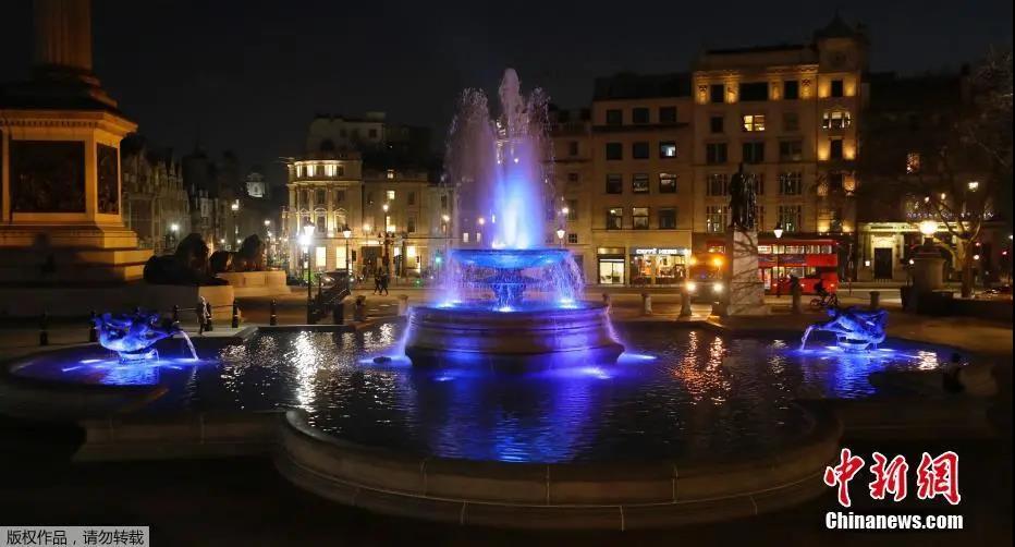 资料图:当地时间2021年1月7日,英国伦敦,多个地标建筑亮起蓝色灯光,致敬抗疫英雄。