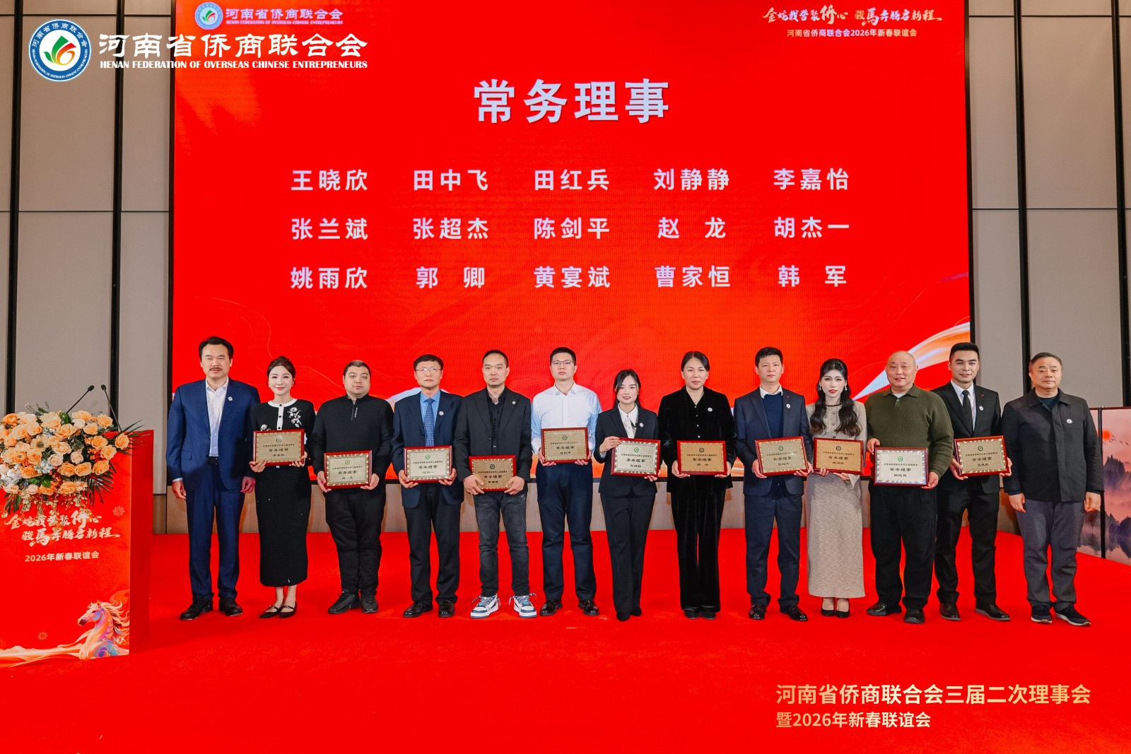 至此,河南省侨商联合会三届二次理事会暨2026年新春联谊会圆满落下帷幕。 这场盛会,既是对过去一年拼搏奋进的总结与褒奖,更是对新一年扬帆起航的动员与展望。站在新的起点,河南省侨商联合会将继续秉持初心,与全体会员一道,以龙马之精神,骋万里之征程,汇聚侨界磅礴力量,为助力河南经济社会高质量发展、谱写新时代中原更加出彩的绚丽篇章作出新的更大贡献!