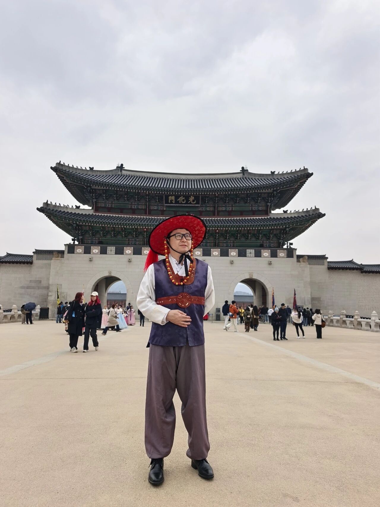 考察团一行还走进了韩国著名历史文化遗址——景福宫,开展了一场别开生面的文化体验活动。作为韩国最具代表性的古宫,景福宫承载着深厚的历史底蕴。成员们在参观过程中,深入了解韩国传统文化与建筑艺术,感受两国历史文化之间的异同。为加深体验,团员们还亲身试穿了韩服,在古色古香的宫殿群中漫步,沉浸式感受异国服饰的独特魅力。此次文化游览不仅增进了大家对韩国历史文化的认知,也促进了团员间的互动交流,进一步丰富了青委会的文化建设内涵。