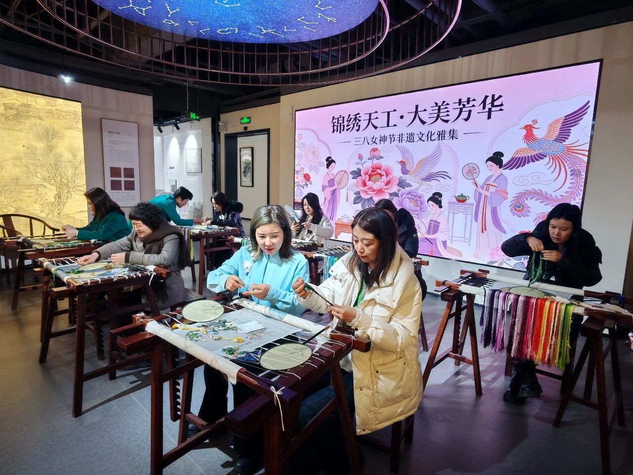 本次活动以“让非遗走进生活,让女神遇见匠心”为初衷,旨在为平日里驰骋职场、兼顾家庭的女性会员们提供一个放慢脚步、滋养心灵的契机。活动地点选在人文气息浓厚的河南经贸职业学院一涵刺绣博物馆,古韵与青春在此交融,为这场非遗盛宴增添了别样的书卷气。