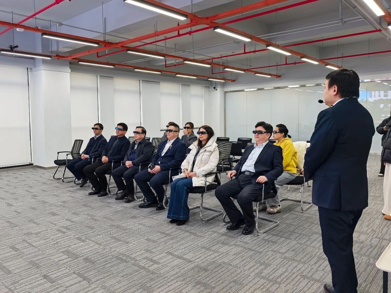 在顾晓山的亲自带领与讲解下,代表团首先参观了中机六院综合展厅与GBIM实验室。顾晓山详细介绍了中机六院的发展历程、核心技术优势及在工程设计领域的标杆项目。作为国内工程设计领域的领军企业,中机六院在智能制造、绿色建筑、数字化工程等方面积累了雄厚的技术实力和丰富的项目经验,其GBIM实验室在建筑信息模型与地理信息系统融合应用方面走在行业前列。