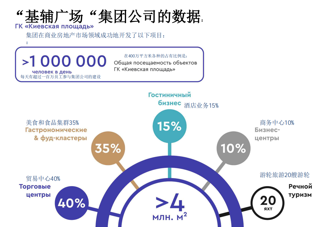 王浩结合其带来的“基辅广场”集团介绍,分享了俄罗斯市场的最新机遇。他介绍道,“基辅广场”集团是俄罗斯商业房地产市场的领军企业,旗下商业地产总面积超过400万平方米,员工人数超过2.8万人,拥有“欧洲商城”“萨达沃”批发零售贸易综合体、“莫斯科”贸易市场综合体等30余个标志性项目。目前集团正在推进奥林匹克体育中心、莫斯科皇家基金会之家、库图佐夫斯基大街14号住宅小区、萨达沃工业园区等多个大型综合体项目。