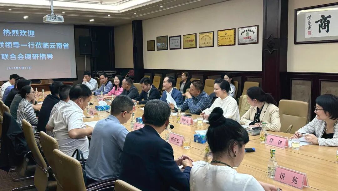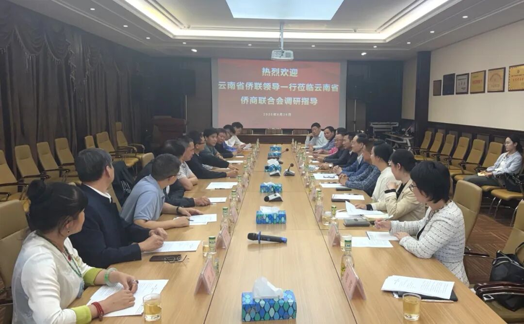 2025年8月26日下午,云南省侨联党组书记、主席候选人何长松,率侨联各部门负责人一行莅临侨商联合会工作调研,重点就如何凝智聚力、服务侨企发展等话题交流意见。云南省侨联兼职副主席、云南省侨商联合会会长、天城集团董事长尹元江,正大集团云贵区副董事长陈浩、云南区副总裁张宏波,昆明一顶旅游产业集团总裁李建辉,浩宏国际物流产业园董事长李天明,云南华尔贝光电技术有限公司董事长徐中选,云南富洋(国际)留学因私出入境有限公司董事长吴莉蓉,云南榕润供应链管理有限公司董事长林福,云南天保桦生物科技有限公司副董事长薛佳,东汇文化云南股份有限公司总经理王振宇,以及云南省北京商会李家宁会长助理张大军、云南省文化艺术交流协会会长张宾、书记景苑等15位在昆侨企与合作单位应邀参会。